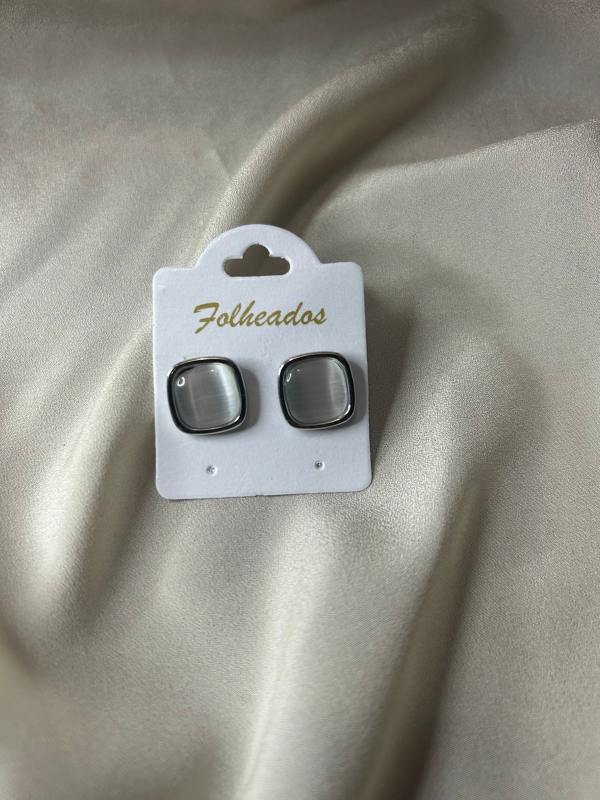 Elegância em formato compacto. Este brinco estilo “botão” apresenta uma pedra central com brilho acetinado e contorno prateado, sendo a escolha perfeita para quem busca sofisticação discreta e iluminada.