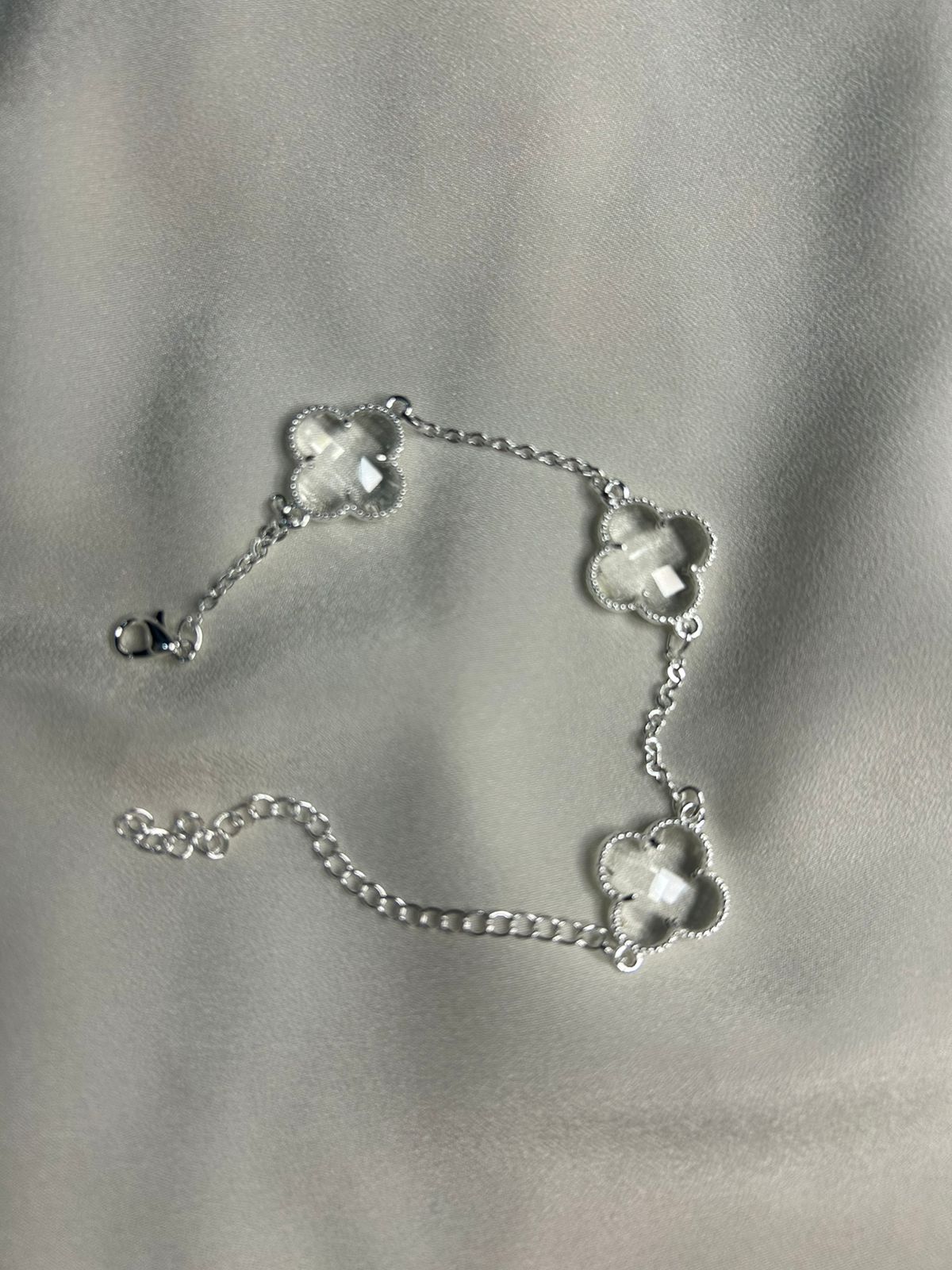 Pulseira Trevos de Cristal Folheada a Prata